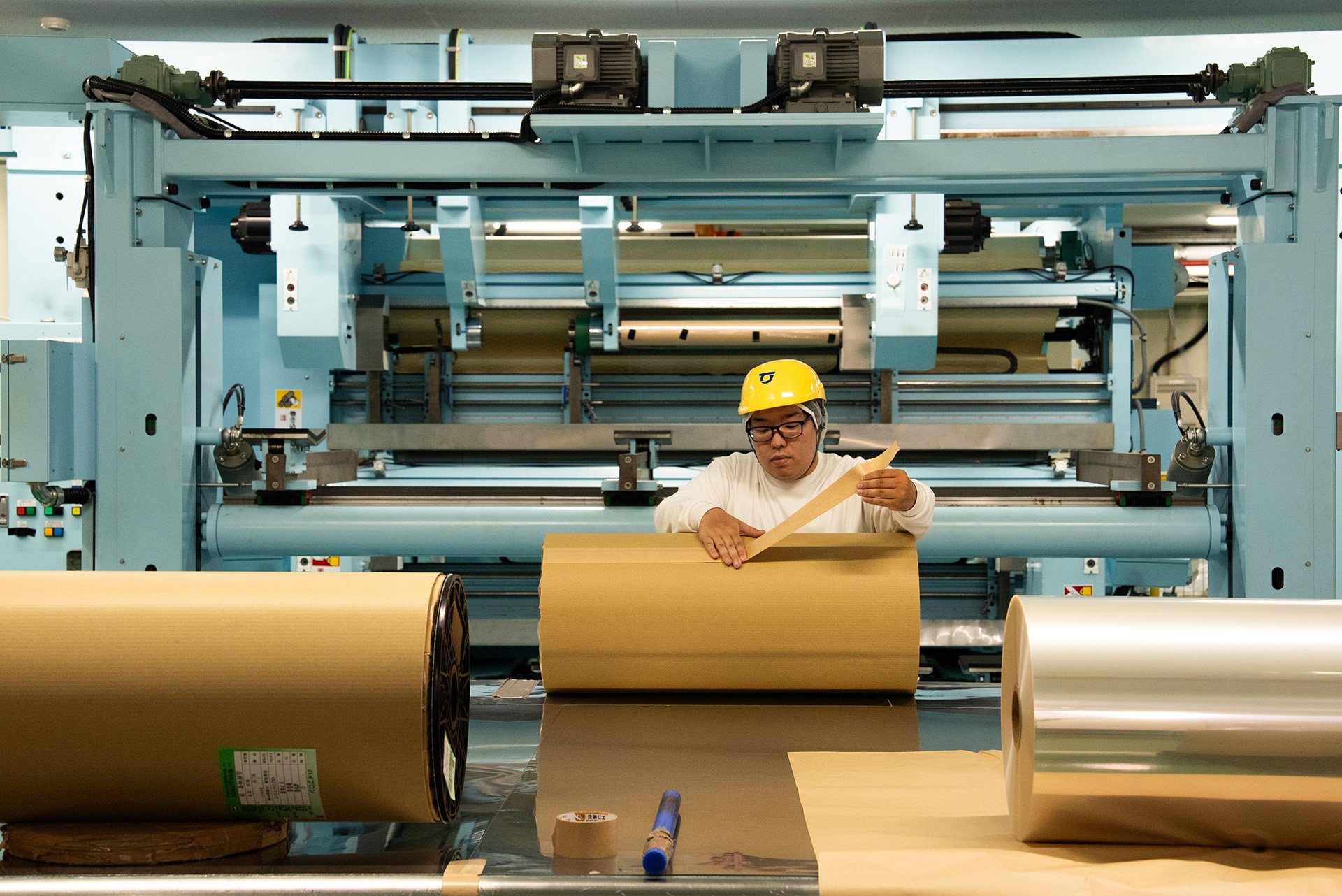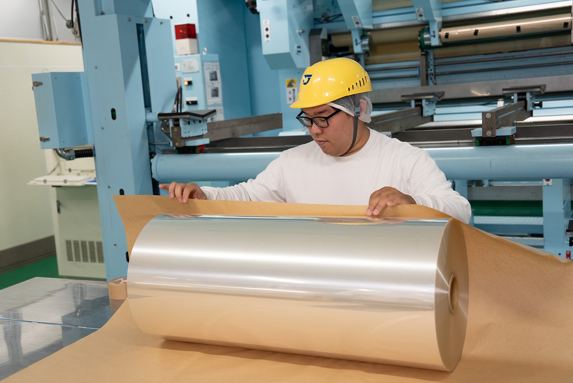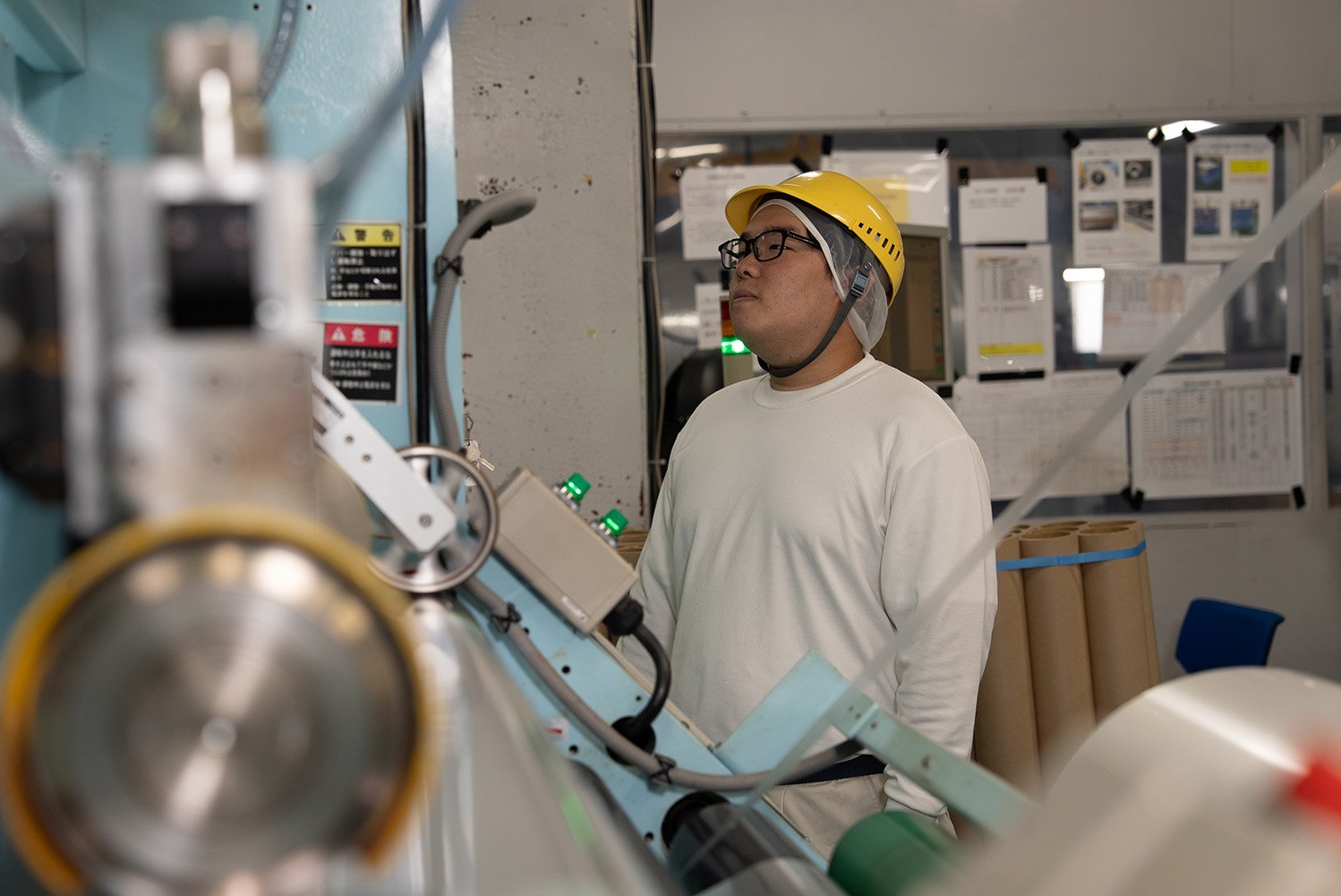 普段は、フィルムを指示された幅や長さに正確に巻き上げて製品に仕上げる仕事をしています。細かい作業ではありますが、自分の手で形になる達成感や、製品が順調に仕上がっていく過程を見るのがとても楽しいです。携わっているすべての仕事にやりがいを感じており、一つひとつの工程を丁寧にこなすことを心掛けています。